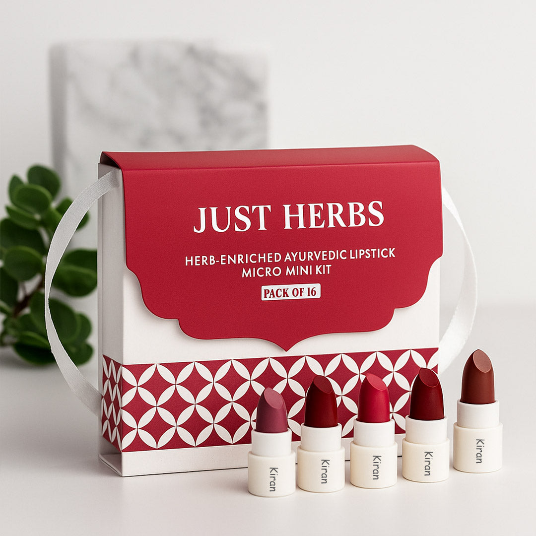 - Just Herbs Mini Lipstick Set – Includes 16 natural, Ayurvedic-inspired lipstick shades