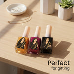 - 3 Premium Nail Polish Bottles – high-quality colours that look rich and long-lasting.