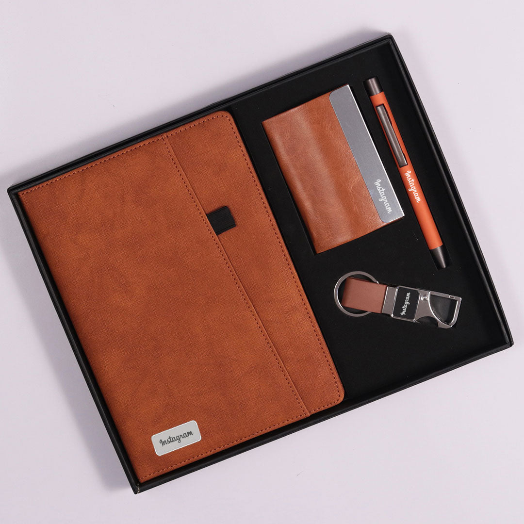 Personalized Combo Gift Set: 4-Piece Corporate Gift (Diary, Pen, Card Holder & Keychain)
