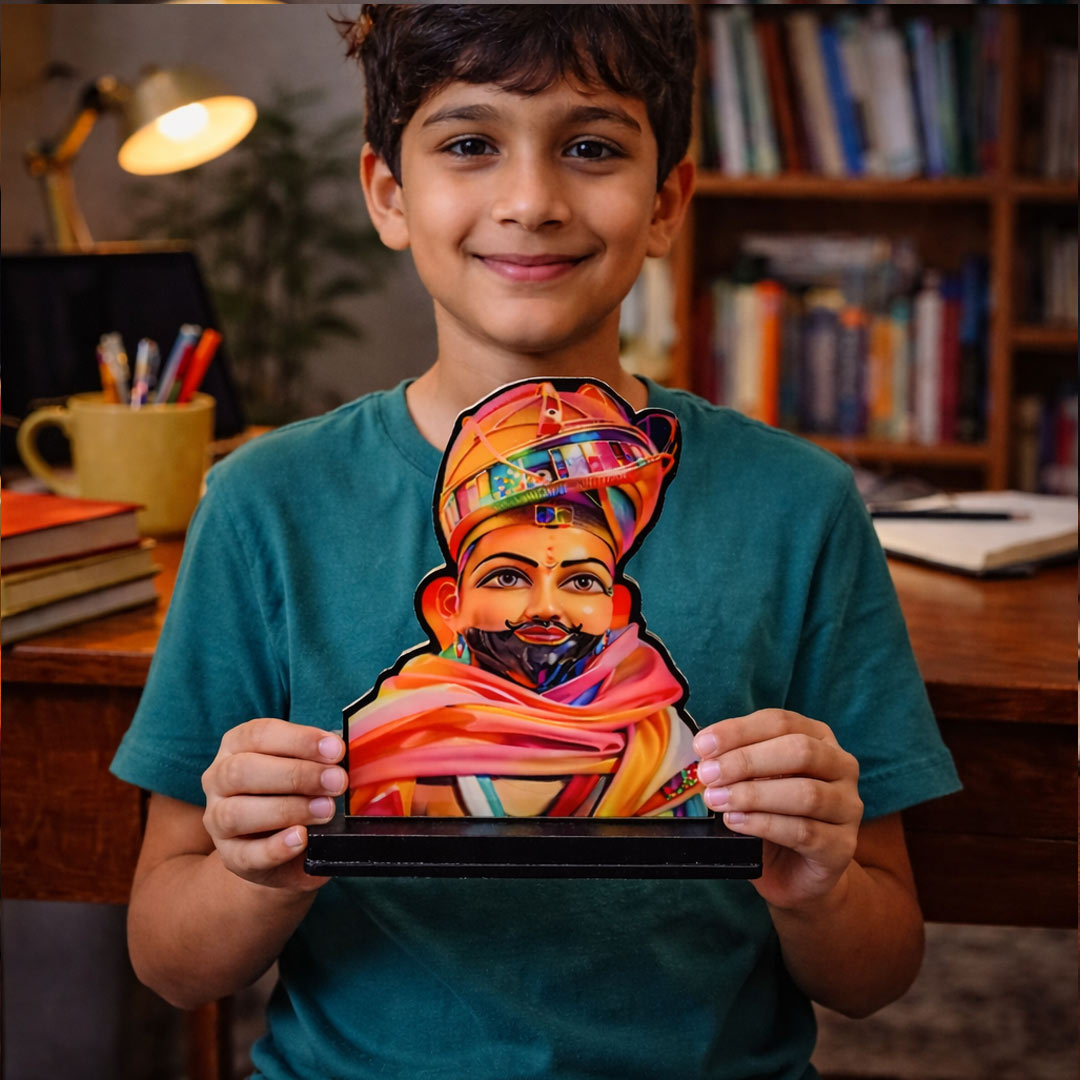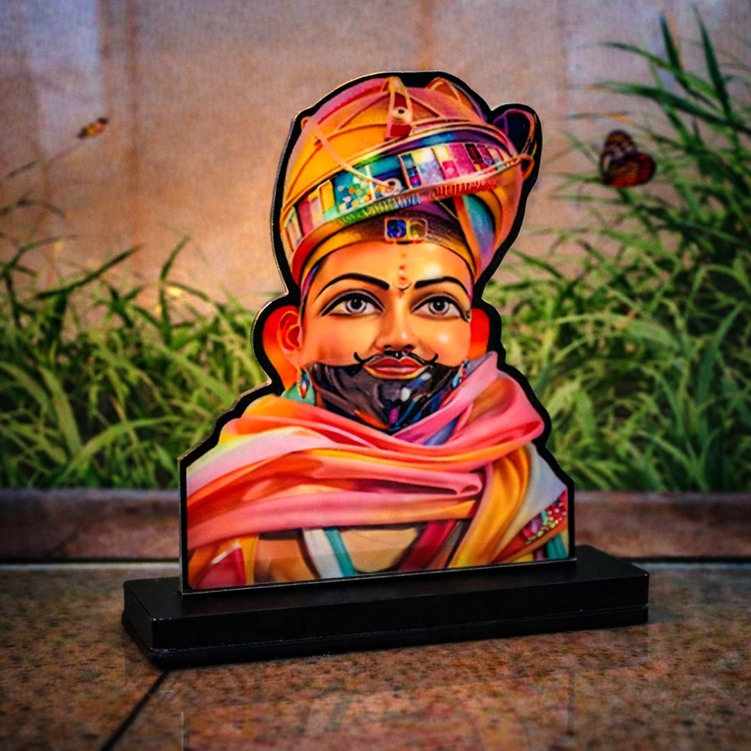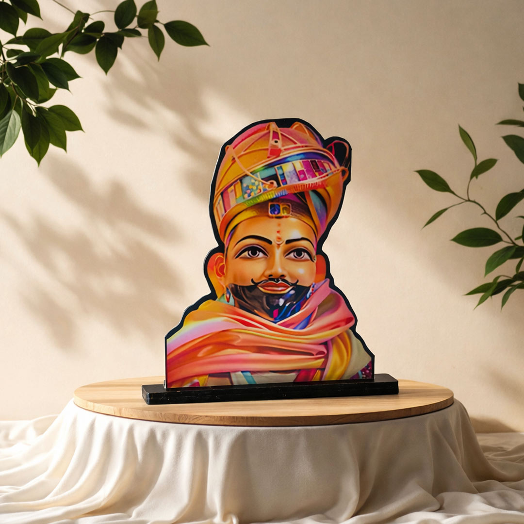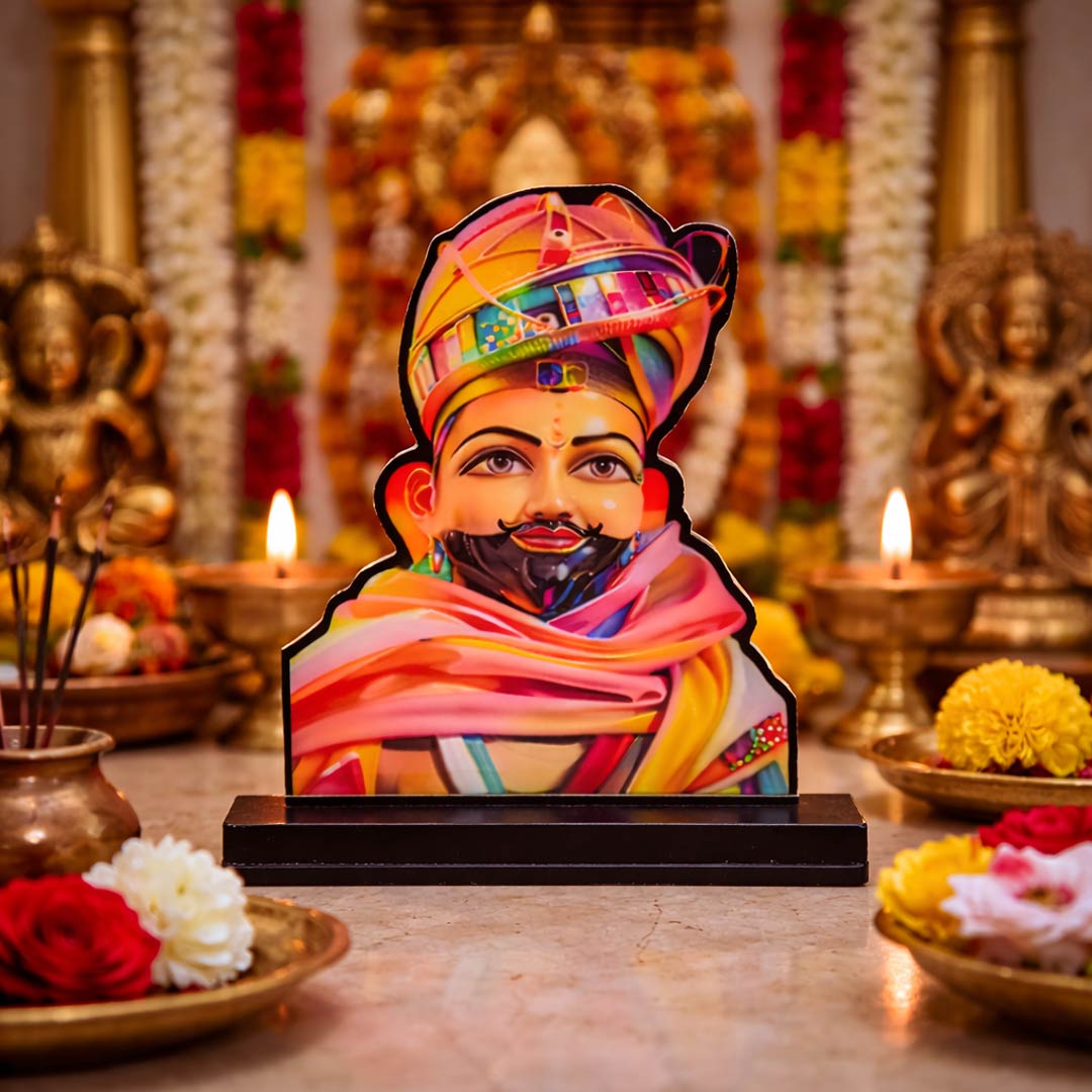 Invite peace, devotion, and positivity into your space with this Khatu Shyam Ji Wooden Table-Top Stand.