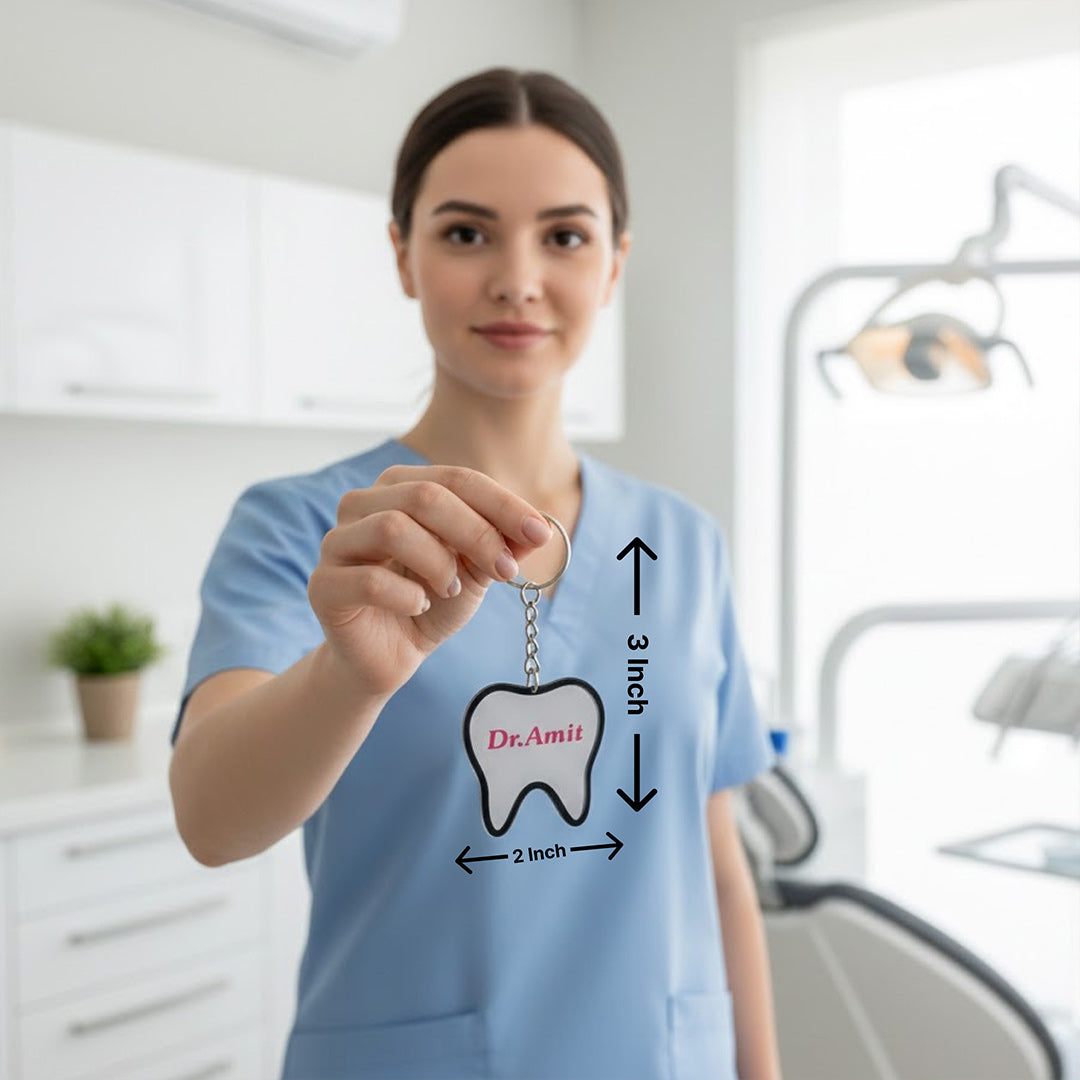 A cute, compact, and personalized tooth-shaped keychain – perfect for dentists, clinics, and dental professionals.