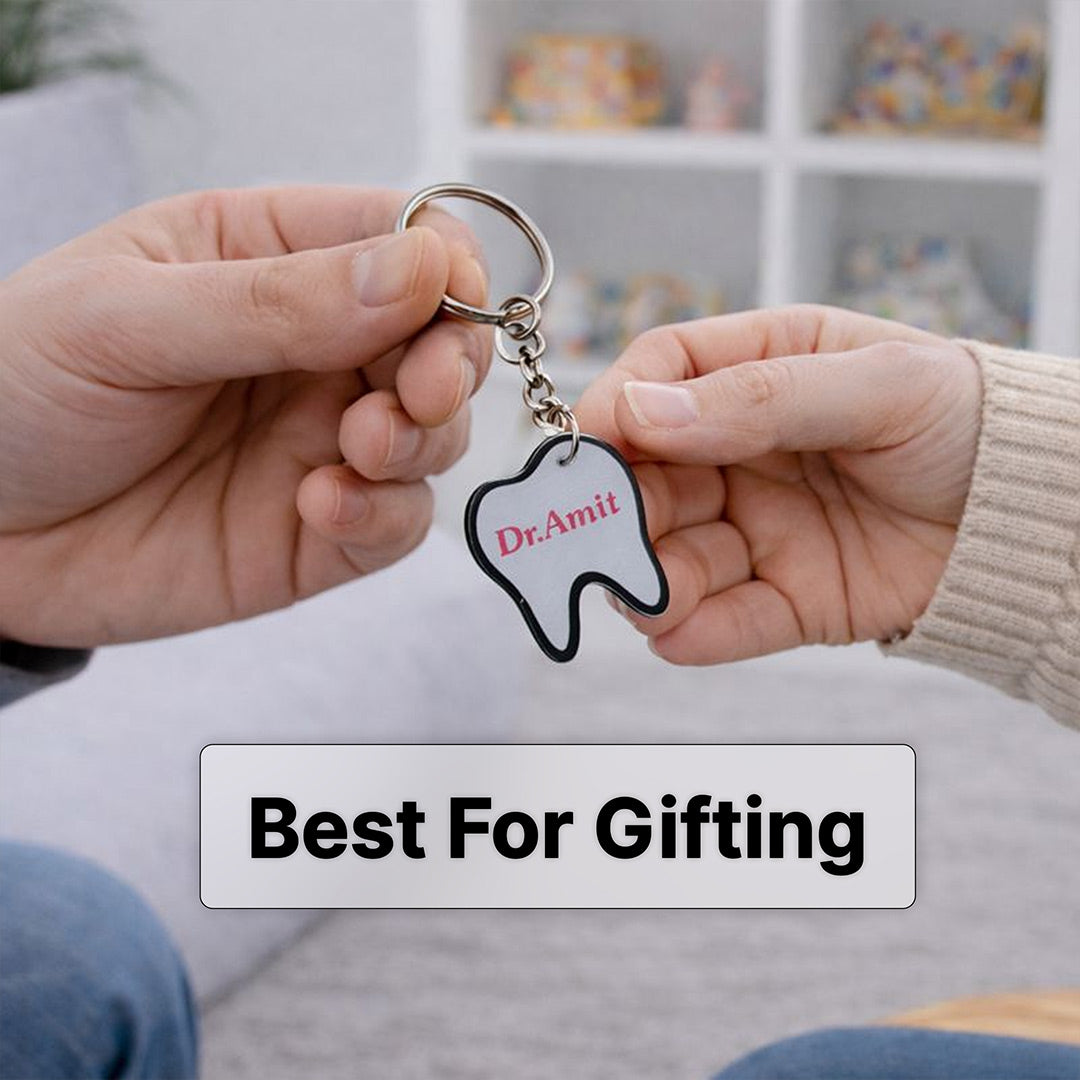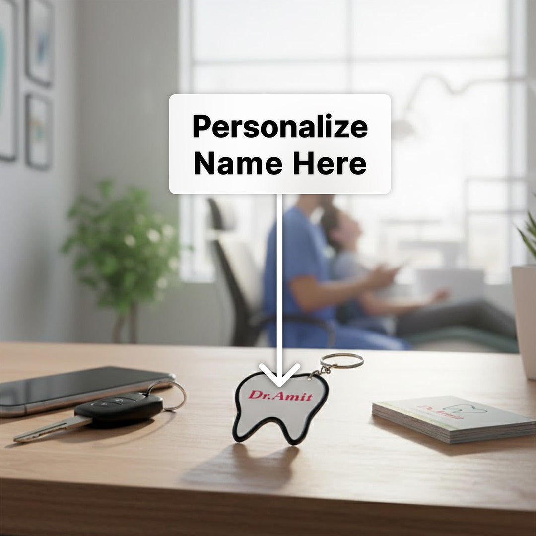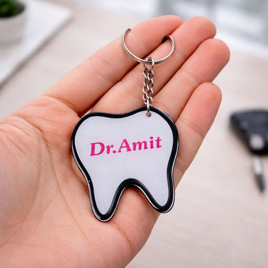 Designed especially for dentists, dental students, and clinics, this compact keychain features a clean tooth design with custom name printing, making it both professional and personal.