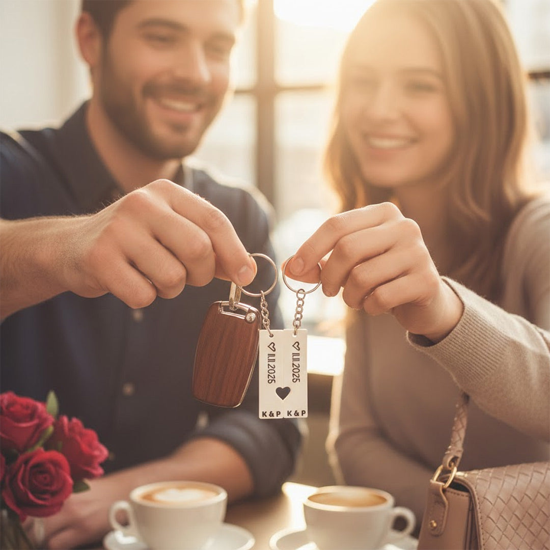 Elegant, minimal, and deeply personal—this keychain is perfect for anniversaries, proposals, weddings, or everyday reminders of love.