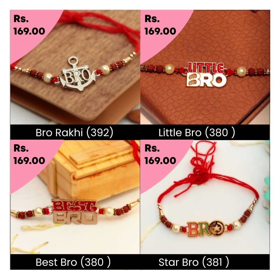 A rakhi with “Bro“ and a star design adds a personal touch although blending style and sentiment for a unique and special Raksha Bandhan.