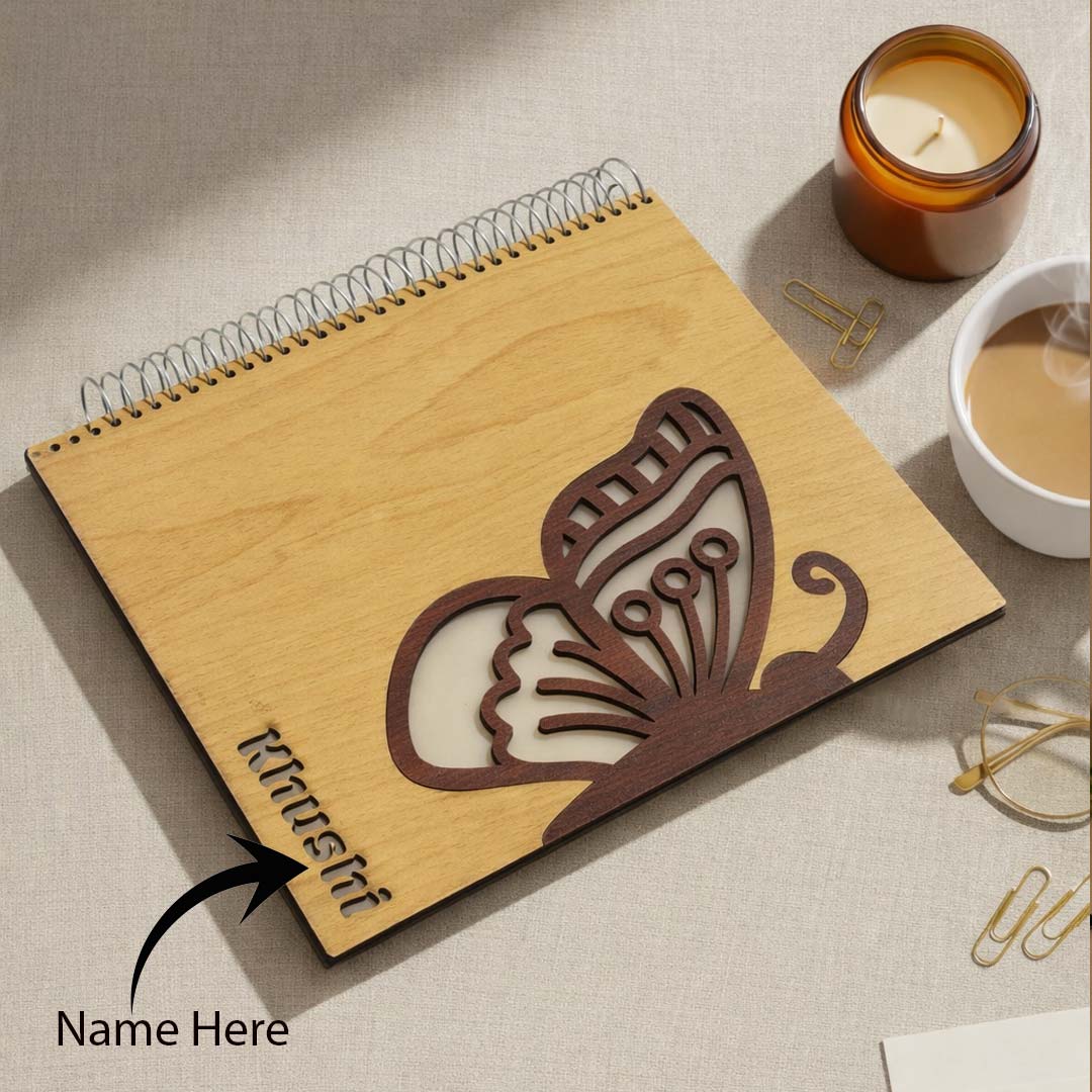 The sturdy wooden cover protects your pages while giving the notebook a premium, handcrafted look. Personalization with a name makes it a thoughtful gift for birthdays, corporate occasions, or personal use.