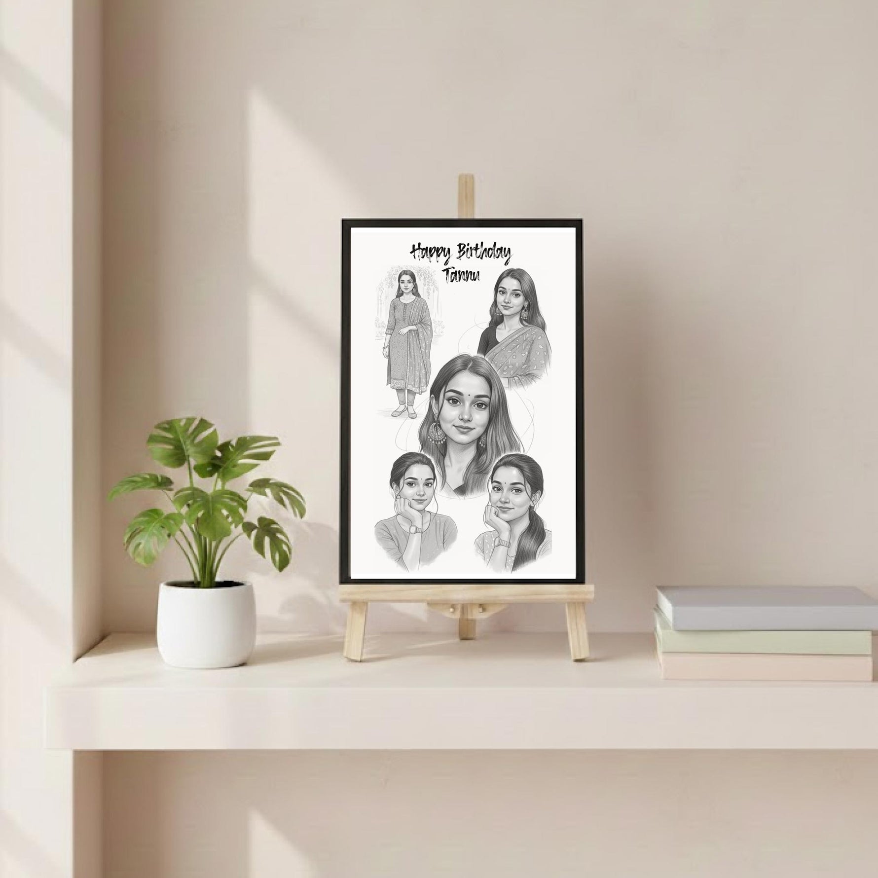 A timeless hand-drawn sketch portrait frame, customized to celebrate birthdays with elegance and emotion.